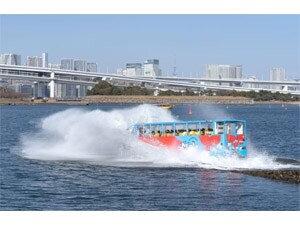 期間限定の復活!GINZA SIXから出発し陸では銀座・お台場・東京港を巡り、そのまま海にスプラッシュ後はレインボーブリッジの下をくぐるなど非日常感を味わえます