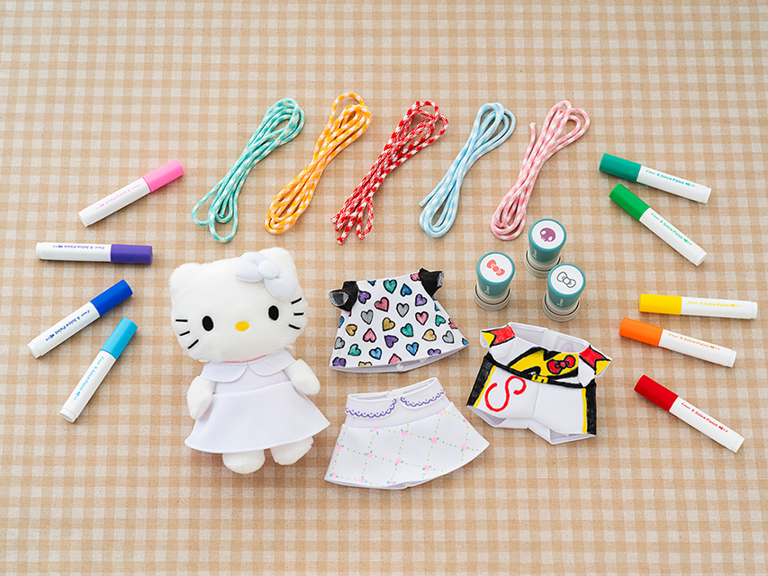 ペンやスタンプを使い、“はじめて”のデザイン制作に自由な発想で挑戦!体験後には世界に一つだけのオリジナルコスチュームを着たハローキティのぬいぐるみをお持ち帰りできるので、忘れられない想い出になります♪