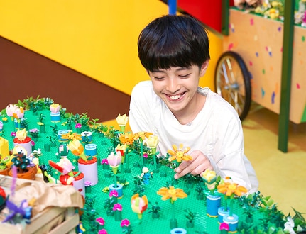 はちの役割や自然とのつながりを、レゴ®ブロックを使って楽しく学ぼう!親子で協力して、カラフルな花やはちを自由に組み立てて展示できます。