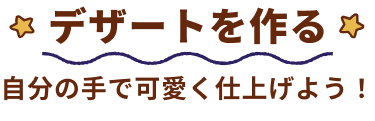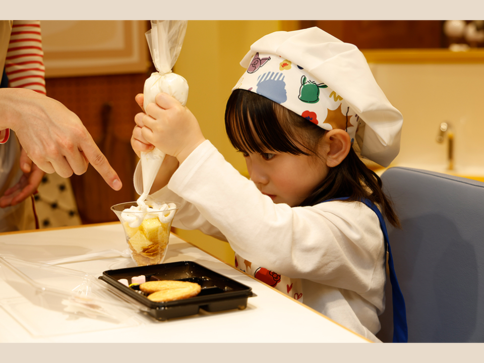 パティシエ気分でキャラクターデザート作りに挑戦!体験後には自分で作ったオリジナルデザートをその場で味わえます。“はじめて”のデザート作りでも、かわいいキャラクタートッピングで楽しく取り組めます♪