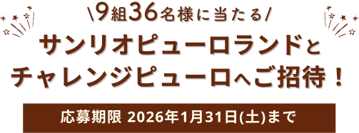 子どもの“はじめて”体験がいっぱいのチャレンジピューロへの参加券と、同行者分を含めたサンリオピューロランドパスポートチケットを4名1組セットで、計9組36名様へプレゼント!ぜひご応募ください♪
