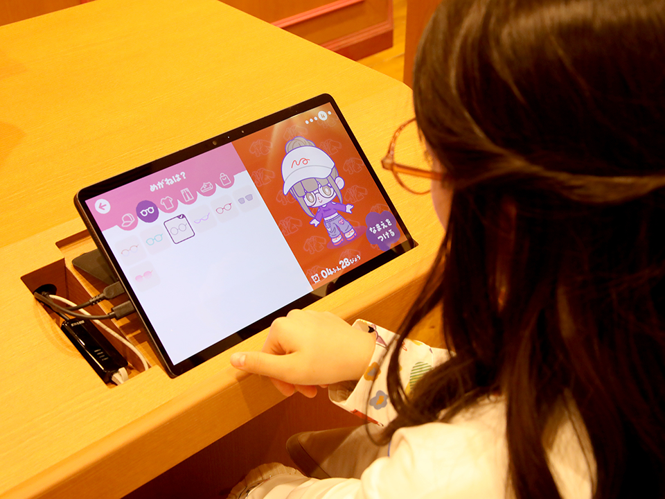 タブレットを使って好きなパーツを選び、自分だけのオリジナルキャラクターを生み出す“はじめて”のキャラクターのデザイン体験♪体験後には、オリジナルキャラクターカード、限定デザインネックストラップ(カードケース)をお持ち帰りできます。