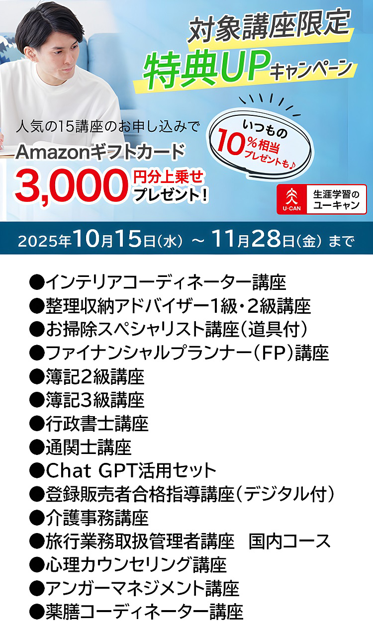 %が支給されます。(最大10万円)ユーキャンなら30講座以上が給付対象可能に!