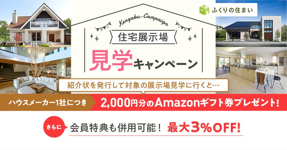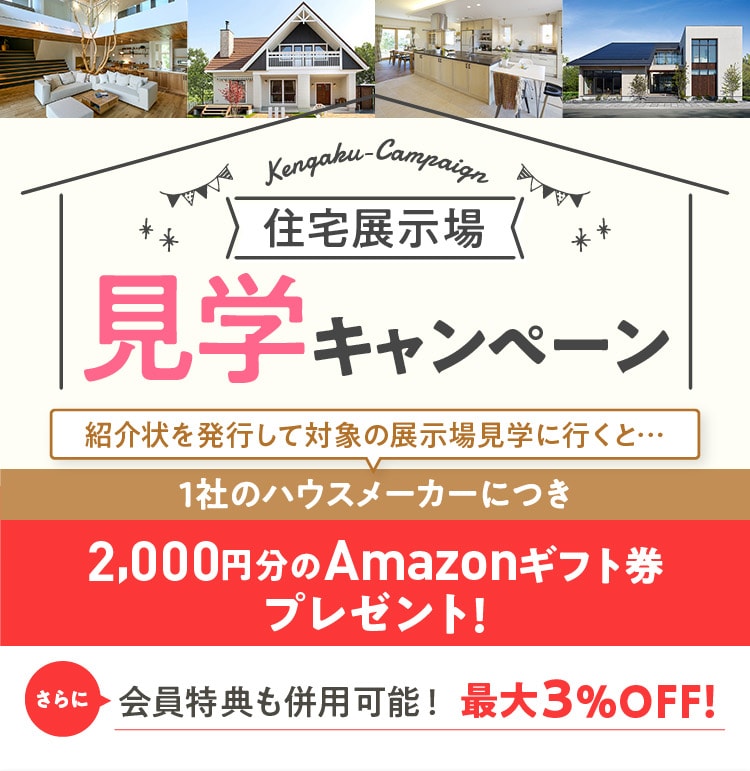 - ハウスメーカー1社の見学につき2,000円分のAmazonギフト券を進呈いたします。