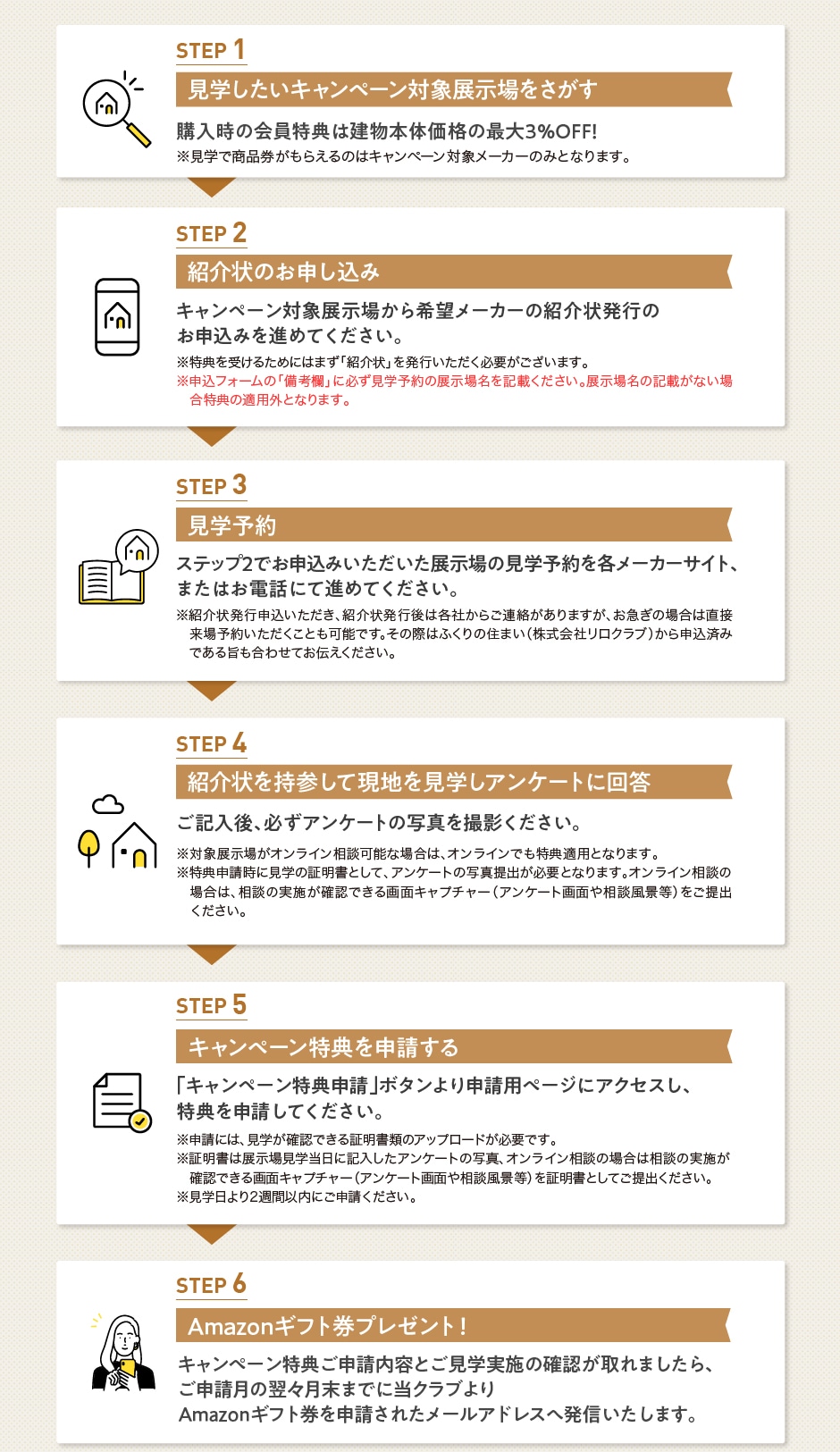 - 対象期間中に紹介状の申請をされ当クラブより紹介状の発行を受け申請期限までに、対象展示場の見学およびキャンペーン特典申請をされた方が対象です。