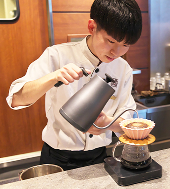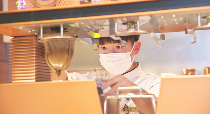 中学生の頃からコーヒー好きの上島珈琲店 千代田区二番町店の店長。高校生の頃コーヒーのドリップ大会を見学した際、バリスタの綺麗な所作に憧れコーヒーに関わる業界を目指し入社。