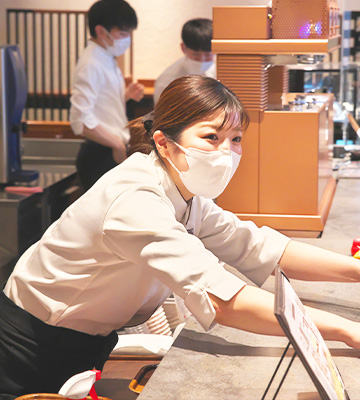 学生時代上島珈琲店でアルバイトをしており、その際に出会った店長の思いやりのある接客姿に憧れて入社。現在では本部で勤務しつつも週に1・2回のペースで店舗へも赴き、スタッフの研修を行っている。