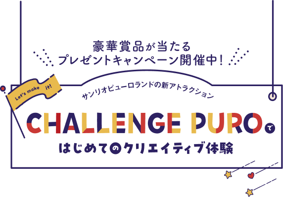 子どもの“はじめて”体験がいっぱいのチャレンジピューロへの参加券と、同行者分を含めたサンリオピューロランドパスポートチケットを4名1組セットで、計9組36名様へプレゼント!ぜひご応募ください♪