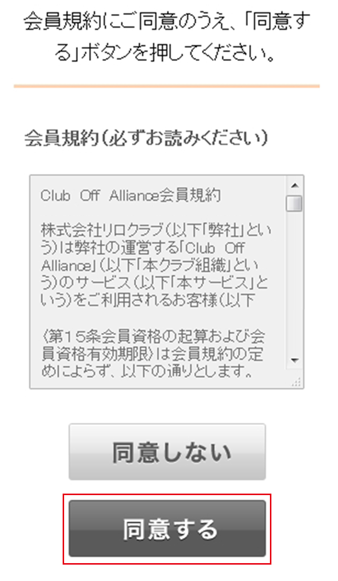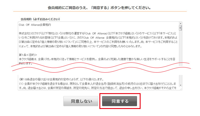 3.会員規約をご確認の上、「同意する」をクリックし、以降、画面の案内に沿って必要事項をご入力ください。