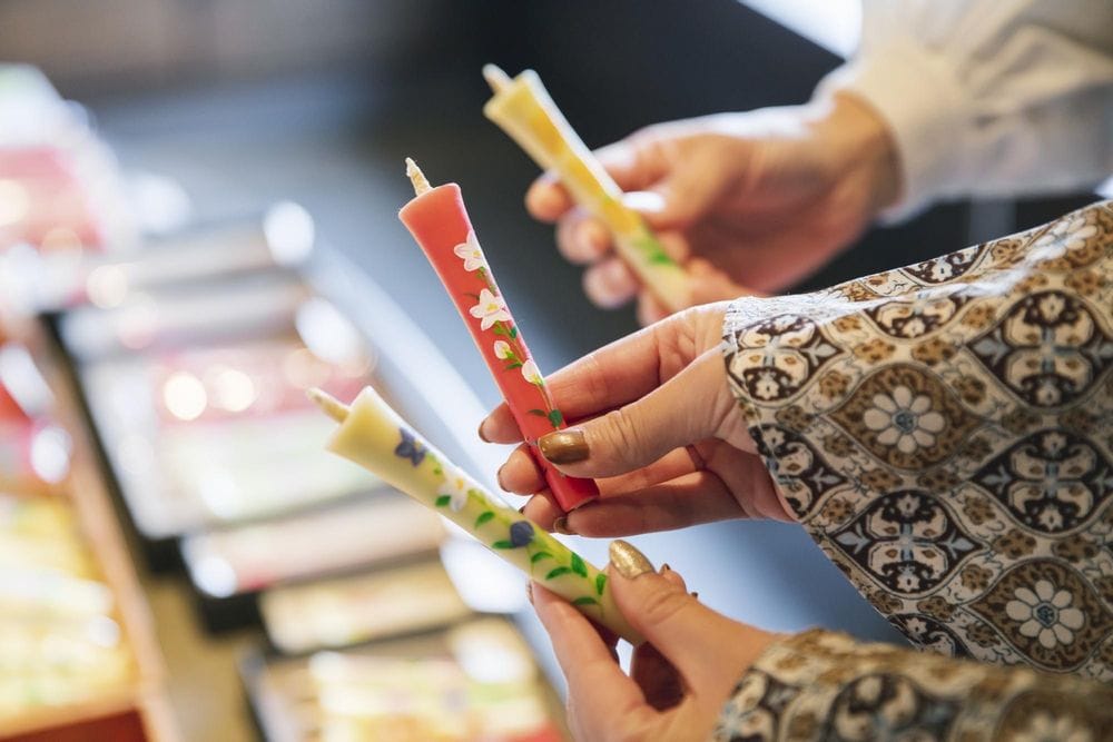 七尾市を代表する工芸品。和紙と灯芯草で作った芯に植物性油から採ったろうを使用した、自然の材料から生まれた地球にもやさしい和ろうそくです。職人の手仕事ににより丁寧に作られた逸品は、おみやげにも自分用にもぴったりのギフト。毎日の暮らしが明るく照らし、豊かに彩ってくれるアイテムです。デザインや色、大きさなど豊富に揃っているので、きっとお気に入りが見つかるはずです。