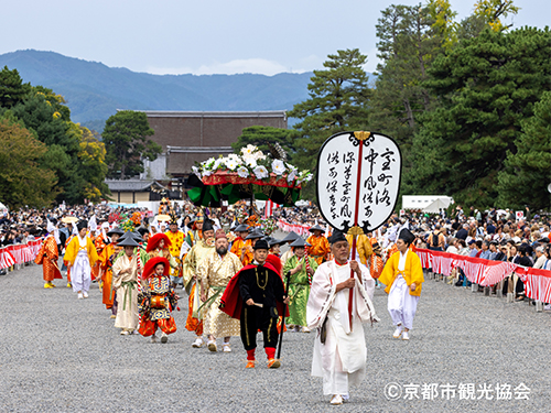「時代祭」京都のまちを練り歩く時代風俗行列を有料観覧席から見学&イヤホンガイドで専門ガイド同時解説にてご鑑賞!落ち着いて時代祭の行列をじっくりご覧いただけます♪