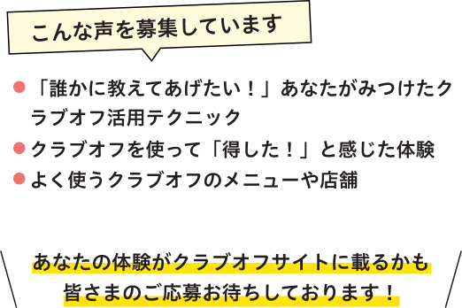 クラブオフのサービスは種類が豊富で、「何をどう使えばいいの?」と迷ってしまう方も多いはず。ライフスタイルや年代によって、活用の仕方はさまざまだと思います。