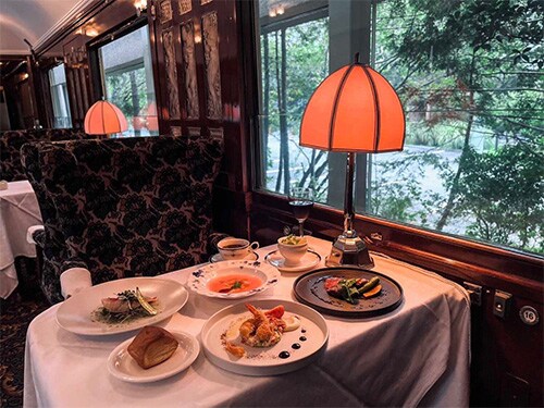 本物のオリエント急行で豪華ディナー!実際に使用されていた車両での非日常体験は貸切ならでは♪フランスの宝飾・ガラス工芸の巨匠、ラリックの作品をゆったり鑑賞も
